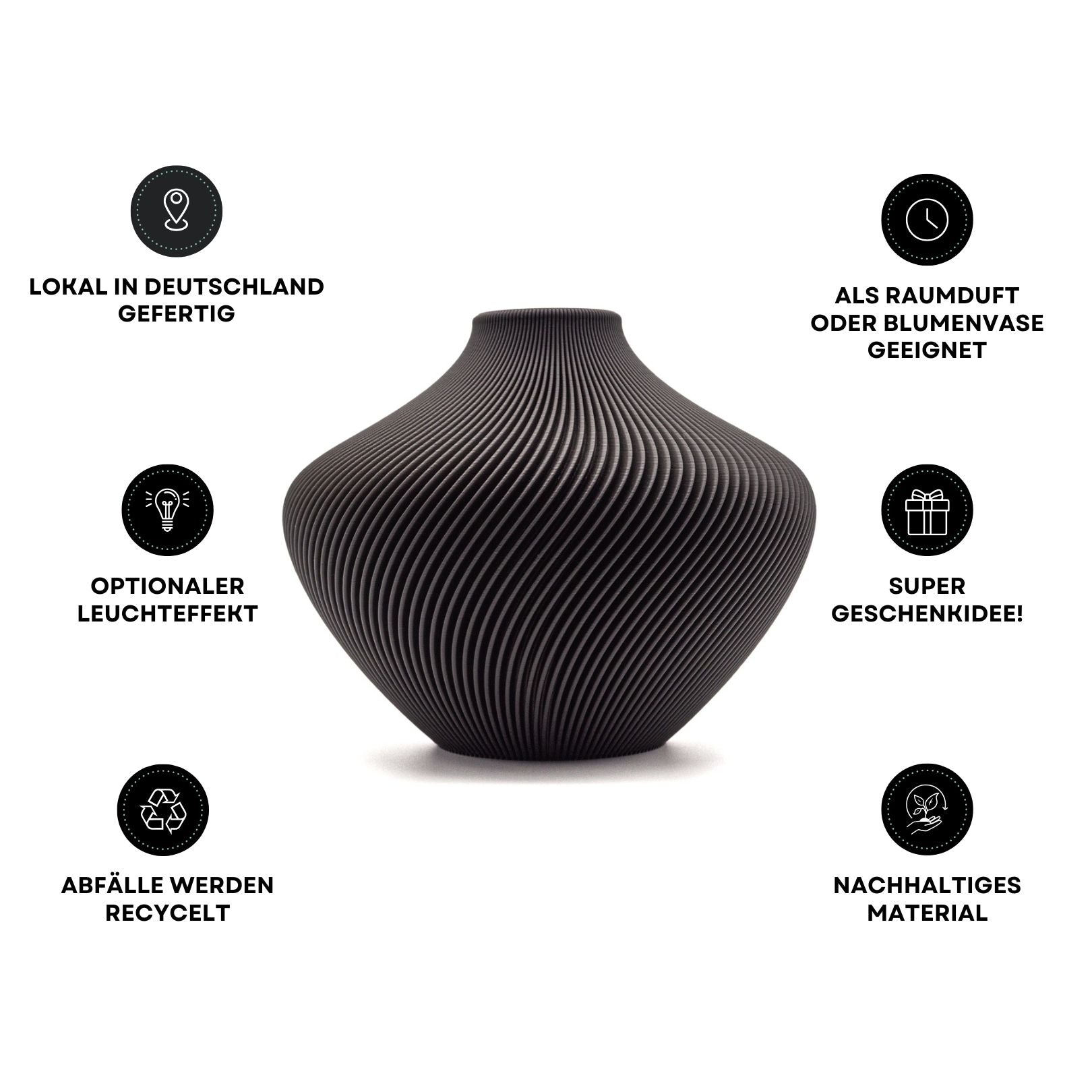 jede Vase entsteht Schicht für Schicht im FDM-3D-Druckverfahren – direkt in unserer kleinen Werkstatt.