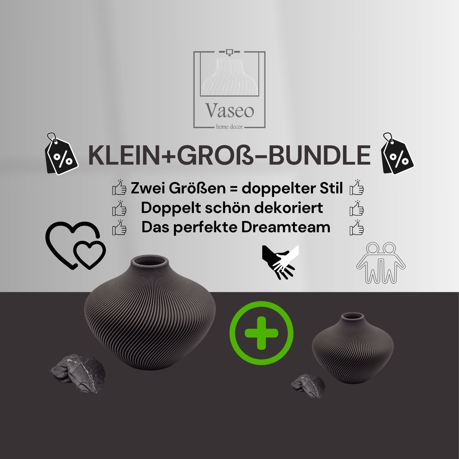 Entdecke unsere praktischen Vasen-Bundles: Ob als Duo-Set mit verschiedenen Recyclingmaterialien, als Multipack in deiner Lieblingsfarbe oder im Klein-und-Groß-Kombipaket – mit unseren Sets profitierst du von attraktiven Preisvorteilen.
