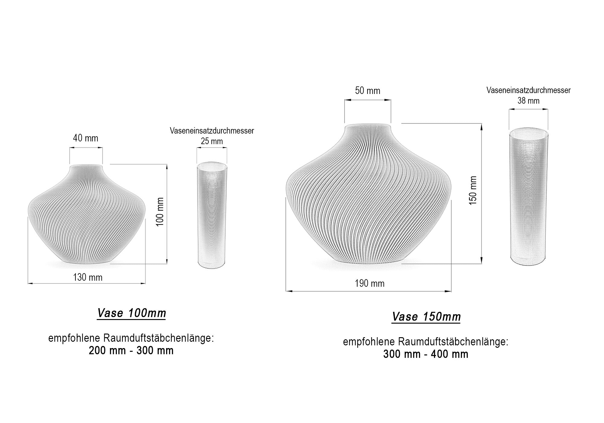 Bitte beachte vor dem Kauf Durchmesser und Höhe – so passen Blumen oder Duftstäbchen perfekt in die Vase.